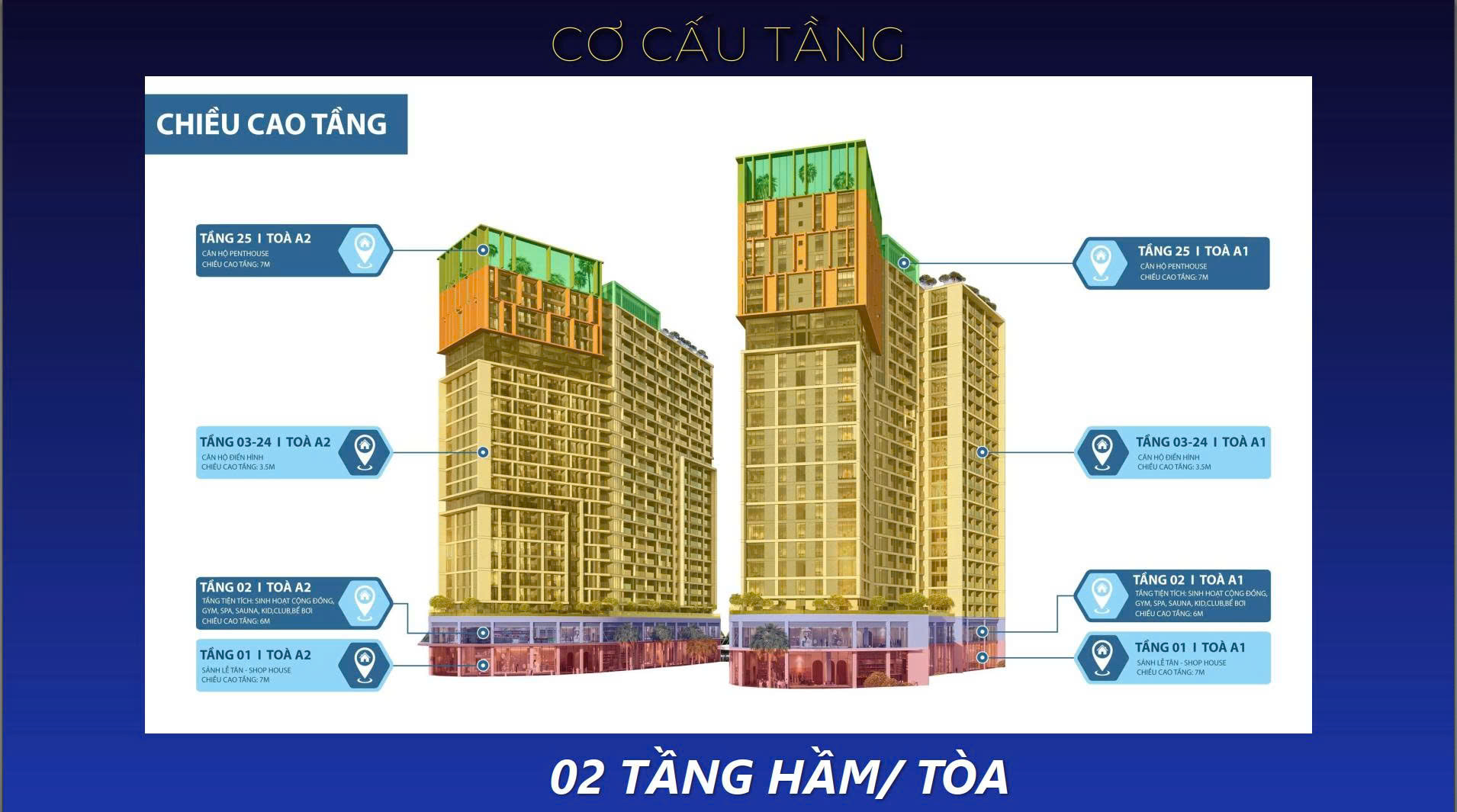 - Dự án bao gồm 2 tòa tháp (A1.19 & A1.20) với chiều cao 25 tầng nổi và 2 tầng hầm.